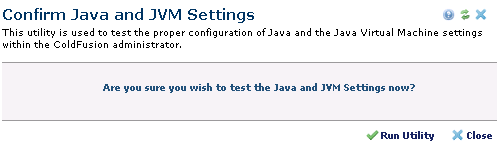 This utility checks to ensure that the Java and JVM settings set within the ColdFusion Administrator are consistent with CommonSpot requirements. Running the utility provides a message indicating if there is a problem with any setting.