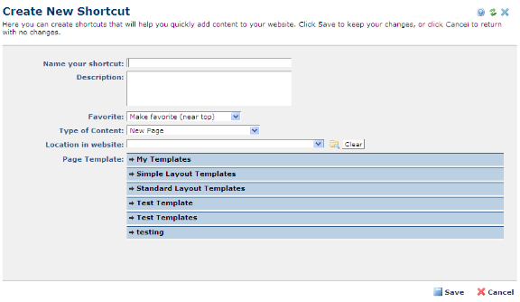 in the Shortcut or Customize Shortcut dialogs and defines rank within the My Favorite Shortcuts listing in My CommonSpot. Favorites display in My CommonSpot. Clicking Save creates the new shortcut. Click the run