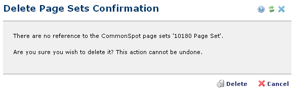 For deleting a single page set, with no active dependencies, CommonSpot displays a message like the following.