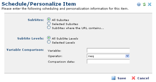 SubSite Levels – Choose this option to schedule by subsite level. Choose all levels below the current subsite or specify subsite levels.