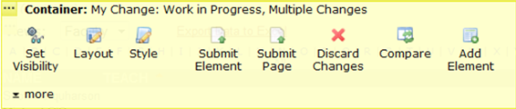 The Set Visibility menu option provides temporary control over the display of Container child elements in author mode. It is important to note that this does not affect rendering outside of author or approve modes. Use this feature to enable editing for child elements that would otherwise not render due to scheduling criteria. For example, you can make elements scheduled for a future date editable by setting visibility to "On." To set visibility after inserting a Container Element, click the Container Element Tool icon.